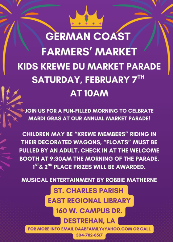 German Coast Farmers Market - P. O. Box 119, Destrehan, LA 70047 (504) 782-8517 info@germancoastfarmersmarket.org